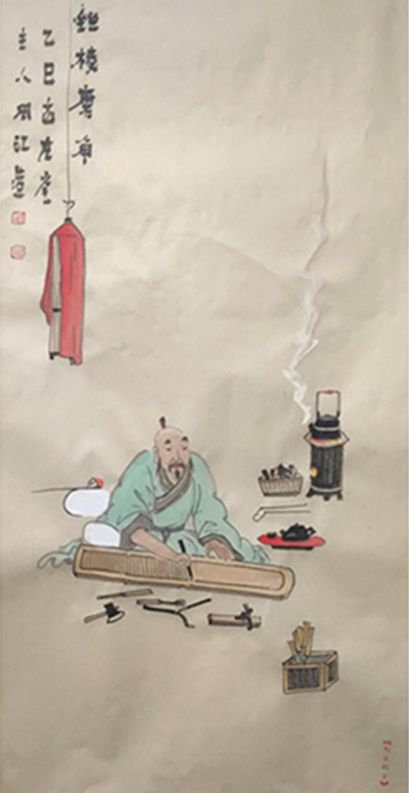 余素慕林逋“梅妻鹤子”之逸致,亦嗜琴之清越,尝观大师凿琴,后绘《凿琴图》以记,慰吾雅好。