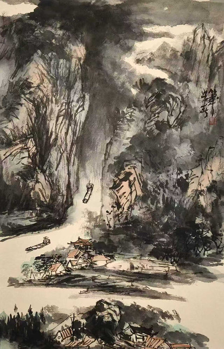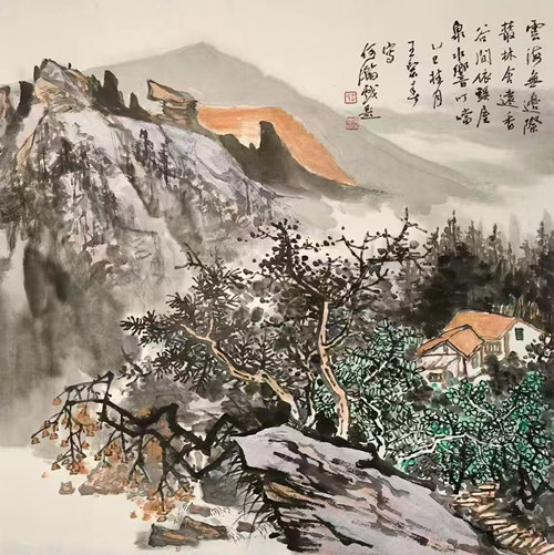 为精进笔墨技法,他常常闭门数日,反复锤炼“披麻皴”的温润与“斧劈皴”的刚劲,在干湿浓淡的墨色变化中探寻山水的肌理与风骨。这份近乎执拗的刻苦,让他的笔墨功底日渐扎实,笔下的山石既有挺拔如骨的苍劲,又不乏温润如肉的灵韵。