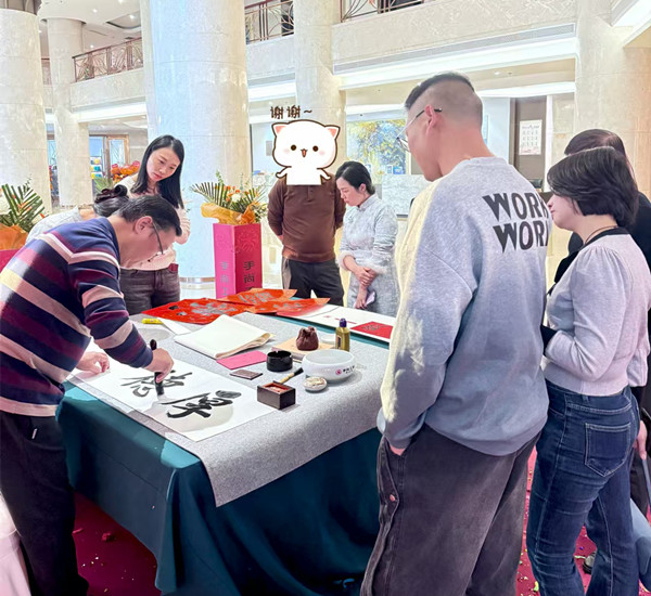 庆典现场,墨香四溢、暖意融融,徐岩现场挥毫泼墨,凝神运笔间,一幅幅饱含美好寓意的书法作品跃然纸上,其中《欢喜》等佳作更是将现场喜庆氛围推向高潮。刚劲有力的笔触、行云流水的线条,既展现出深厚的书法艺术造诣,也以笔墨为媒,为漳州总代理的庆典送上最真挚的祝福,让在场嘉宾在感受传统书画魅力的同时,体会到茶文化与书法艺术交融的独特韵味。手尚工夫总舵主翁道钊与现场嘉宾共同见证了这一美好时刻,大家纷纷表示,此次书画创作让庆典活动更具文化内涵,也让茶文化的传播多了一份艺术温度。
