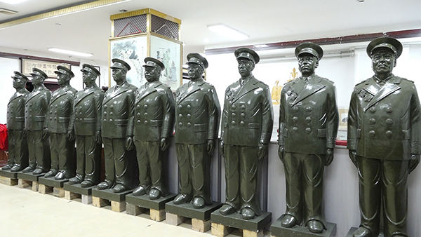 活动的核心环节——伟人雕像揭牌仪式,将现场气氛推向高潮。随着红绸缓缓落下,由洮砚石打造的巨型雕像群震撼亮相:毛泽东、周恩来、朱德三位伟人雕像每尊重达近4吨,身旁矗立的十大元帅、十位上将雕像同样气势恢宏,共同构成“红色文化+非遗艺术”的独特景观。雕像选材自甘肃优质洮砚石,雕像群的创作不仅是对老一辈无产阶级革命家的致敬,更希望以非遗技艺为桥梁,让红色文化通过具象化的艺术载体走进大众,成为“铭记伟人功绩、赓续红色血脉”的鲜活教材。