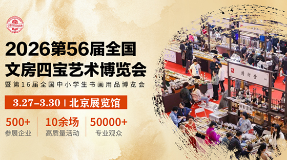 由中国文房四宝协会、《中国文房四宝》杂志社共同主办的“第56届全国文房四宝艺术博览会暨第16届全国中小学生书画用品博览会”定于2026年3月27-30日在北京展览馆隆重举办。届时将有来自广东肇庆、浙江湖州、江西文港、安徽歙县、安徽泾县、四川夹江、杭州富阳、江西婺源、甘肃卓尼等35个产业集群和特色区域的500余家企业及一得阁、戴月轩、周虎臣、曹素功、红星宣纸、西泠印社、马利画材、荣宝斋、朵云轩等头部品牌企业和歙县老胡开文、屯溪胡开文、漳州八宝印泥、成都倚天斋、上海双维印泥、百年墨宝等众多行业新兴品牌企业携最新研发的文房精品与创新成果齐聚一堂,涵盖笔、墨、纸、砚全产业链高、中、低端产品与非遗手工艺精品,集中展现行业科技融合与设计升级的前沿风貌。除此之外,中国工艺美术大师、中国文房四宝艺术大师梁佩阳、蔺涛、莫伟坤,中国文房四宝艺术大师马志良、杨松源、钱建梁、章小华、李小平、刘嘉兴、 梁德常 汪顺清、李耘萍、刘华、刘靖、杜吉河等将亲临展会现场为观众带来大师级创作技艺的现场展示,通过笔墨间的气韵流转,展现中华传统书画艺术的深邃意境。