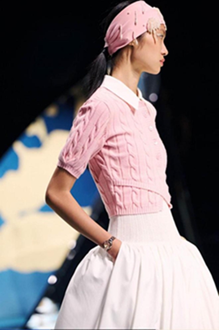 秀场上,模特们身着 RuirUiruI 的新季时装,腕间叠戴天王表,不仅打破了传统腕表的佩戴方式,更完美契合了「三相月」主题所倡导的对时间哲思的探索。腕表不再仅仅是记录时间的工具,更是时尚搭配的点睛之笔,让女性气质处于自由的状态中,灵活且有态度地表达个性和品味宣言。