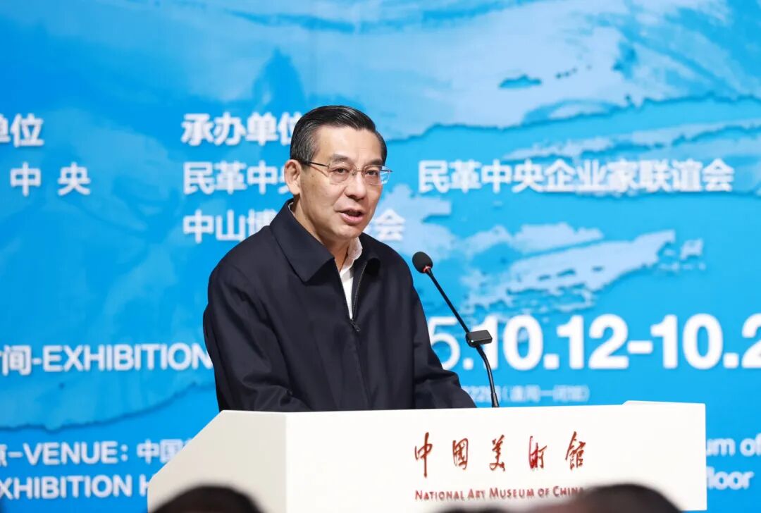 何报翔在讲话中指出,长江的保护和发展,是习近平总书记念兹在兹的牵挂。自2021年开始,受中共中央委托,各民主党派中央、无党派人士围绕长江生态环境保护,开展为期5年的民主监督工作。今年是“绿水青山就是金山银山”理念提出20周年,也是长江生态环境保护民主监督工作的收官之年。我们举办以“共绘一江清水”为主题的书画作品展,邀请民革30个省级组织共同参与创作长卷《新长江万里图》,正是希望讲好长江流域生态环境保护和高质量发展的生动故事,展现民主党派在参与长江生态环境保护民主监督工作实践中的积极作为。他强调,要深刻把握文艺工作的正确方向,自觉把艺术追求融入国家建设事业之中,创作出更多无愧于我们这个伟大时代、伟大国家、伟大民族的优秀作品,为强国建设、民族复兴添砖加瓦、贡献出力。