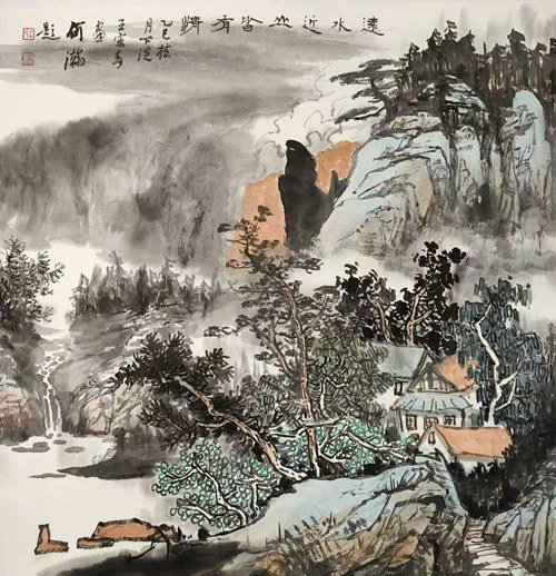 为精进笔墨技法,他常常闭门数日,反复锤炼“披麻皴”的温润与“斧劈皴”的刚劲,在干湿浓淡的墨色变化中探寻山水的肌理与风骨。这份近乎执拗的刻苦,让他的笔墨功底日渐扎实,笔下的山石既有挺拔如骨的苍劲,又不乏温润如肉的灵韵。