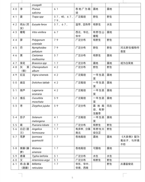 甲类植物中,2类植物可以通过长途运输而来,不一定为本地所产,一般不与讨论。但是,刘姥姥带来的干菜类,以及其他明显属《红楼梦》中的本地植物,如倭瓜、枣等也列入讨论;