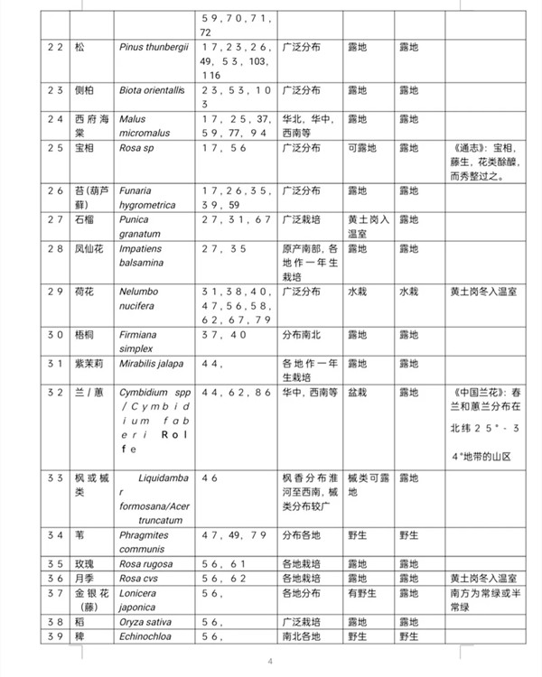 所以,本文所能讨论的只有第1类植物和部分2类植物,也就是可以实际“生长”在《红楼梦》中的植物。详见下表: